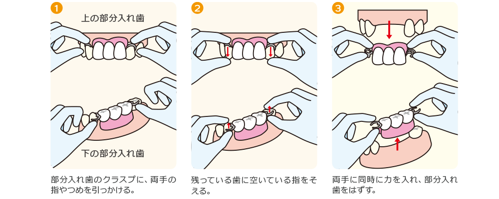 入れ歯はコツをつかめば、簡単にはずすことができます。